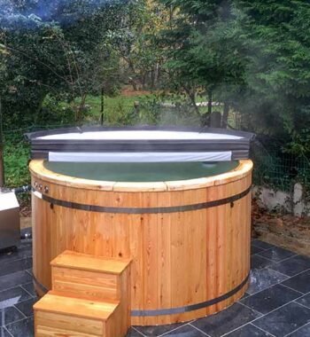 Un bain nordique en bois avec intérieur en plastique offre l’apparence traditionnelle et la technologie moderne. La caractéristique unique du bain nordique en plastique est un rebord décoratif en bois sur le bord supérieur du bain. C’est un bon compromis entre un bain nordique moderne en acrylique ou en fibre de verre et un bain nordique traditionnel entièrement en bois.
