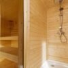 Plancher de sauna – planches en bois d’épicéa avec imperméabilisation