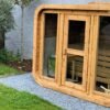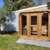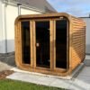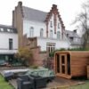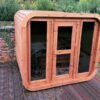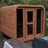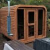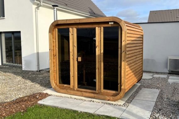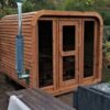 Le sauna DELUXE s’agit un sauna extérieur en forme de tonneau rectangulaire avec des vitres panoramiques sur la façade. La caractéristique unique du sauna Deluxe est la possibilité d’ajouter le toit en bois. Le sauna mesure 2,5 m de large, 2,0 m de profond et 2,3 m de haut. Il y a deux bancs à deux niveaux à l’intérieur où 4-7 adultes peuvent facilement s’asseoir. Suivez la dernière tendance et optez pour un sauna tonneau, facile à l’emploi et parfaitement intégré dans votre jardin.
