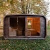 Les dimensions extérieures sont de 4,00 mètres sur 2,45 mètres, mais ils pourraient être modifiables. L’espace sauna est équipé de deux vastes fenêtres panoramiques en verre trempé de 1,5 mètre sur 1,75 mètre, offrant une vue magnifique et une luminosité naturelle. La porte d’entrée, conçue en bois, est également dotée d’une fenêtre en verre trempé pour un design moderne et élégant. En option, vous pouvez opter pour un éclairage LED extérieur, parfait pour mettre en valeur le sauna de nuit.