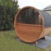 Un sauna en forme de tonneau est un sauna extérieur au design unique, doté de deux bancs et d’un poêle sauna. Grâce à sa forme distinctive, le sauna tonneau s’intègre parfaitement dans tous les types de jardins. Comparés aux saunas rectangulaires, les saunas en forme de tonneau offrent une meilleure circulation de chaleur, avec une zone de chauffage réduite de 25 %. En conséquence, les saunas tonneaux se chauffent plus rapidement et consomment moins d’électricité ou de bois de chauffage. Cette circulation d’air uniforme assure une répartition efficace de la chaleur, garantissant ainsi une expérience de sauna des plus agréables. Optez pour la dernière tendance en choisissant un sauna tonneau, à la fois facile à utiliser et parfaitement intégré dans votre jardin.
