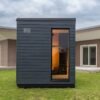 Finition extérieure – Noir, Anthracite ou Gris clair Le Saunum Classic propose une finition extérieure en anthracite (par défaut), noir ou gris clair. Cela permet une intégration harmonieuse dans divers environnements extérieurs, garantissant que le sauna complète votre jardin ou votre espace piscine avec son design élégant. Chaque option conserve l’attrait moderne du sauna, répondant à différentes préférences stylistiques.