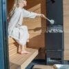 Saunum Experience : Chauffage de spa à domicile polyvalent avec des options de puissance allant de 3,6 kW à 9 kW, adapté aux petites salles de sauna (2–10 m³). Conception compacte disponible en noir ou gris anthracite, avec hauteur réglable et option de paniers de pierres ouverts ou fermés. Contrôle via l’unité Saunum Leil ou Leil Mobile, et système breveté de mélange d’air enrichi en ions de sel de l’Himalaya pour une expérience de sauna relaxante.